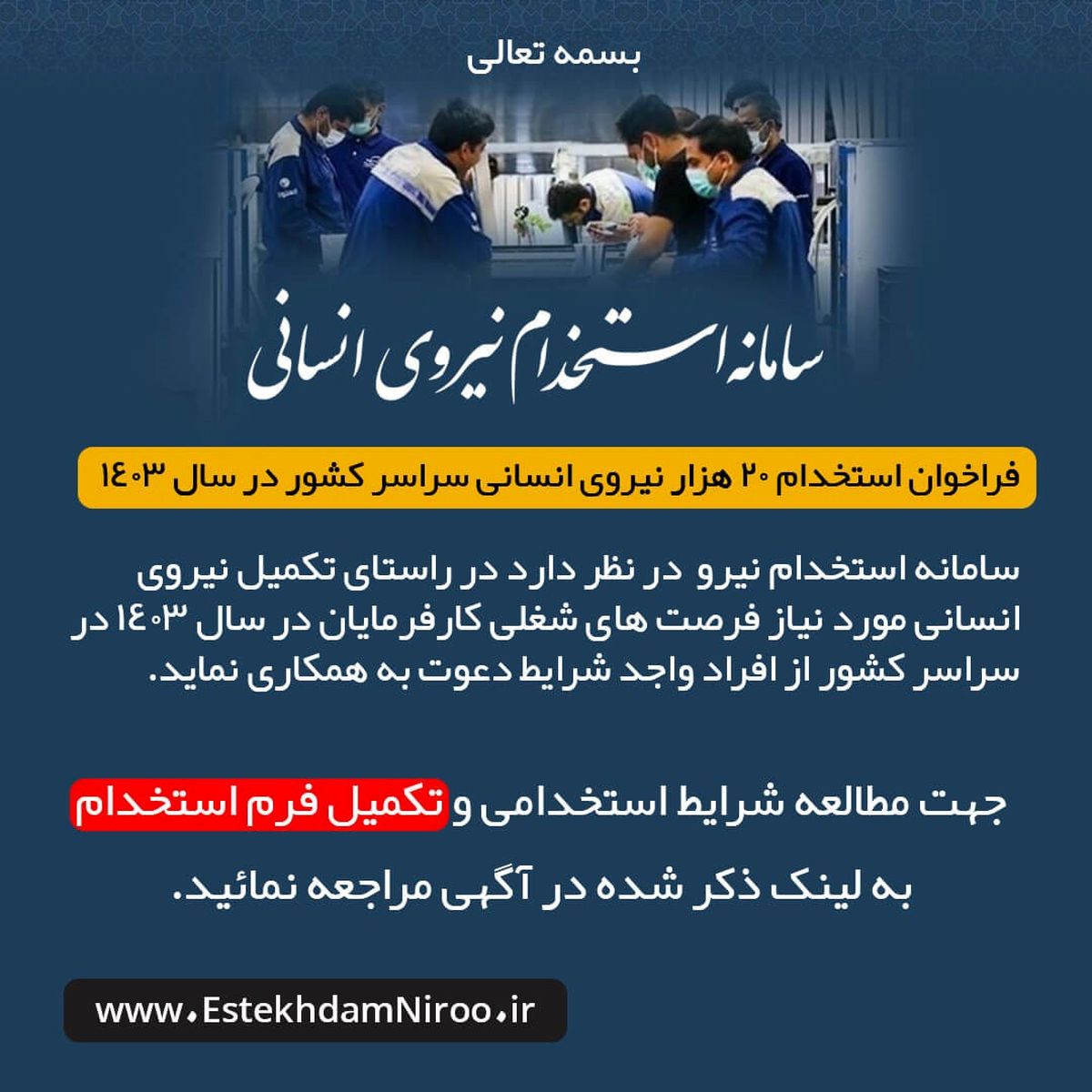 فراخوان استخدام 20 هزار نیروی انسانی در سراسر کشور در سال 1403